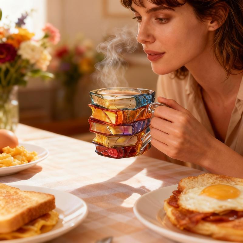 This mug is shaped like a stack of classic books, with hand-painted details that make each piece one of a kind. Crafted from painted glass, it offers both charm and functionality—a practical yet artistic addition to any reader’s daily rituals or desk display.